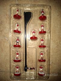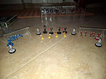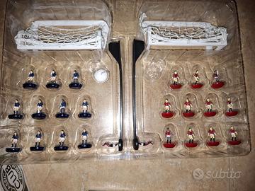 Vendo Subbuteo/Zuego composto da: 1) confezione base (manca 1 pallina) 45 2) giocatori della Roma 15,90 3) Giocatori della Juventus 15,90 4) transenne girocampo 15,50 5) 4 arbitri + 4 bandierine (manca la scatola) 8,90 6) 2 confezioni di panchine, una rossa ed una blu. Ogni confezione contiene: 1 panchina, 1 dirigente, 1 allenatore 4 riserve in tuta sedute in panchina, 1 riserva che corre di giocatori in panchina. (mancano le scatole, ma i due set sono completi) 21,00 7) pannello di legno misure 120x150 su cui è già montato il campo subbuteo. Il pannello si appoggia su un qualsiasi tavolo ed è subito pronto per partite e puro divertimento!!! Il trasporto è a carico dell'acquirente. PREZZO NON TRATTABILE. Servizio di spedizione NON DISPONIBILE.