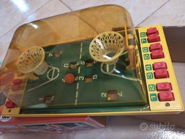 Gioco meccanico del basket anni '80, abbastanza conosciuto. Il vetro sopra sembra lievemente ingiallito ma era così (fumè) anche da nuovo. Nonostante i suoi quarant'anni è tutto perfettamente funzionante. Le a dir poco ottime condizioni sono visibili in foto. Completo della sua scatola originale. Prezzo intrattabile, è il più basso del web.