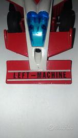 Supercar GATTIGER LEFT MACHINE MADE IN HONG KONG , in ottime condizioni qualche leggerissimo segno del tempo. In metallo e plastica , ruote posteriori pieghevoli con perno sotto la macchina, senza la parte in plastica esterna e scatola.