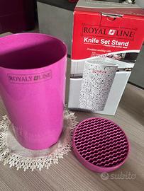 Supporto per coltelli (portacoltelli) rosa scuro in plastica - Royal Line - NUOVO, con scatolo.