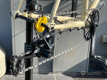 Mantieni la catena sul pignone finto per facilitarne la pulizia dopo aver smontato la ruota posteriore. Questo attrezzo è compatibile con perni passanti da 12 mm. È dimensionato con un gioco per consentire il cambio del deragliatore.
