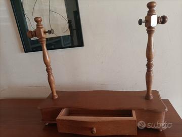 supporto in legno con cassetto per specchio basculante, leggermente tarlato