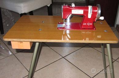 Bellissima ed originale macchina da cucire per bambini anni 60. Si tratta di una macchina da cucire vera ma fatta per bambini con il suo tavolino originale, manca il pedale di contatto, perfettamente conservata, da collezione