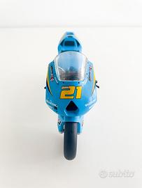 Modellino Diecast IXO Altaya in scala 1/12 della Suzuki GSV-R di John Hopkins, MotoGP stagione 2006. Condizioni ottime, in questi anni è stato esposto con cura all'interno di una vetrinetta come oggetto da collezione. Vendo senza scatola originale, ma con imballaggio accurato per la tipologia di articolo.