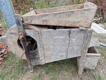 Antico Svecciatoio per cereali con sistema a setaccio. L'attrezzo e' completo e funzionante. In buono stato considerando l'eta'. Consegna a mano in zona Millesimo.