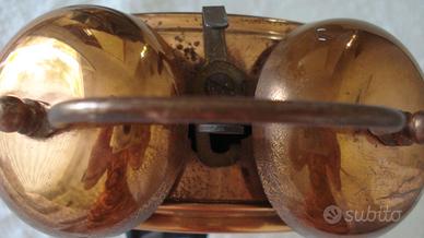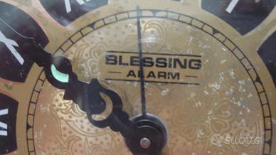 vendo vecchia sveglia Blessing West Germany in rame, diam. 9 cm, ancora perfettamente funzionante (meccanismo a carica manuale, lancette, suono sveglia). Rumorosa, piu' adatta come decorazione. Tracce di ossidazione dovute al tempo
