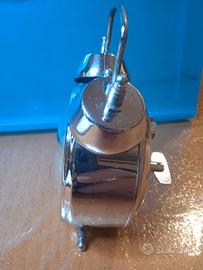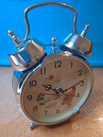 Sveglia con gallina vintage marca Diamond,in metallo cromato,in ottime condizioni e funzionante sia come orologio che come suoneria. Made in China,anno 1992.