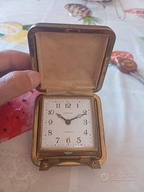 La parte meccanica dell’orologio necessita di revisione (rotella dei minuti bloccata), mentre la sveglia suona regolarmente. Condizioni estetiche vissute, con segni del tempo che ne raccontano la storia e ne accentuano il carattere retrò.