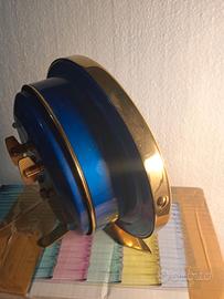 Sveglia vintage Diamond made in China in metallo di un bellissimo colore blu con rifiniture dorate,in ottime condizioni estetiche.