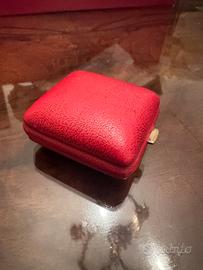 Vendo bellissima sveglia da viaggio vintage, originale marchio Kienzle. Si tratta di un classico modello con movimento a carica manuale, perfettamente funzionante [<-- IMPORTANTE: da confermare!]. Caratteristiche: • Brand: Kienzle • Origine: Made in Germany (come indicato sul quadrante) • Epoca: Presumibilmente anni '60 o '70 • Design: Elegante quadrante quadrato color argento spazzolato, con numeri arabi (3, 6, 9, 12) e cassa interna dorata. • Custodia: Compatta, con guscio pieghevole in pelle (o similpelle) rossa. L'orologio si presenta in buone condizioni estetiche, come da foto, con normali segni del tempo sulla custodia che ne testimoniano l'autenticità e il fascino vintage. Perfetta per collezionisti, come raffinato oggetto d'arredo per un comodino o una scrivania, o per chi ama il design Mid-Century.