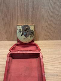 L'oggetto mostrato nell'immagine è unasveglia da viaggio vintage, un accessorio meccanico molto comune a metà del secolo scorso. Ecco alcuni dettagli principali su questo tipo di oggetto: Design:Queste sveglie sono caratterizzate da una struttura quadrata in ottone o metallo dorato, racchiusa in una custodia pieghevole protettiva in pelle o similpelle (in questo caso di colore rosso). La custodia serve sia a proteggere l'orologio durante il trasporto sia a fare da supporto quando è aperta. C'è una pellicola attaccata alla custodia che con pazienza è removibile. Periodo:Modelli con questa estetica risalgono tipicamente aglianni '50 e '60. Caratteristiche tecniche:Sono orologi meccanici acarica manuale. Spesso sul quadrante è presente la dicitura "Jewels" (rubini), che indica il numero di cuscinetti sintetici utilizzati nel movimento per ridurre l'attrito e prolungarne la durata. Marchio:Sebbene il marchio sul quadrante sia "NORSTEL & C.", il design è identico a quello di celebri produttori dell'epoca comeEuropa,VegliaoKienzle.