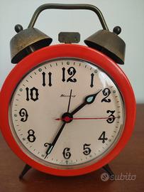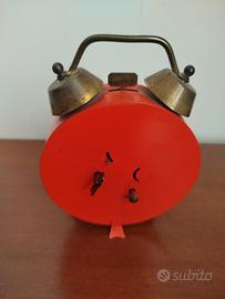 Splendida sveglia meccanica originale prodotta in Germania Ovest (West Germany) dal celebre marchio Blessing. Un vero pezzo di storia del design degli anni '70, perfetto per un tocco Space Age o modernariato in camera o in ufficio. Caratteristiche principali: Meccanismo: Originale a carica manuale. Funzionamento: funzionamento ok, la sveglia è da verificare se suona. Estetica: Colore rosso vibrante. Presenta una bellissima patina naturale e leggeri segni del tempo che ne certificano l'autenticità e il fascino vintage (nessun graffio profondo). Dimensioni: Diametro del quadrante di 10 cm. Un oggetto iconico per chi ama il ticchettio classico e l'affidabilità della meccanica tedesca d'epoca.