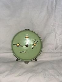 Vendo una sveglua bintage da tavolo, a marca kienzle, made in Germany. Si tratta di una sveglia vintage con un design retrò e una cassa color verde menta. Il quadrante è color crema con numeri arabi neri e lancette luminescenti. Presenta due piccoli quadranti secondari per i secondi e per l'impostazione della sveglia. Da sistemare.
