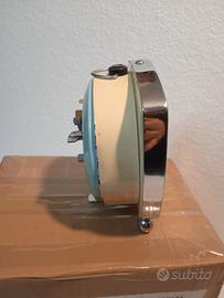 Sveglia vintage Diamond in metallo di colore azzurro e beige con quadrante color oro,in buone condizioni estetiche,con qualche segno del tempo come in foto, è del 1975.Funziona l' orologio,la suoneria no.