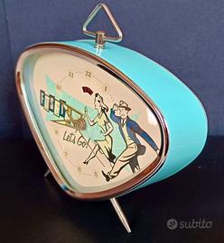 Cerchi un tocco di stile retrò per il tuo comodino o la tua scrivania? Questa splendida sveglia Fossil anni 90 è un mix perfetto di design atomico e nostalgia. Caratterizzata da una forma a "televisore" tipica degli anni '50, una vivace scocca color azzurro pastello e una grafica dinamica sul quadrante che recita "Let's Go!" con una coppia in stile cartoon dell'epoca.