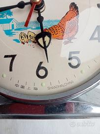 sveglia vintage di un bellissimo colore con gallina che muove la testa, funzionante