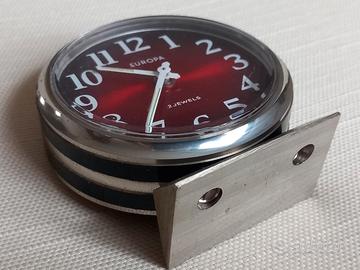 Sveglietta da viaggio meccanica marca "Europa" - 2 jewels - Germany, pulita, perfettamente funzionante come orologio e sveglia, collaudata per 72 ore con carica giornaliera, diametro cm.6,5 per spessore cm. 2,5.