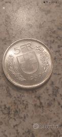 Vendo moneta originale da 5 Franchi Svizzeri anno 1969, zecca di Berna (B).