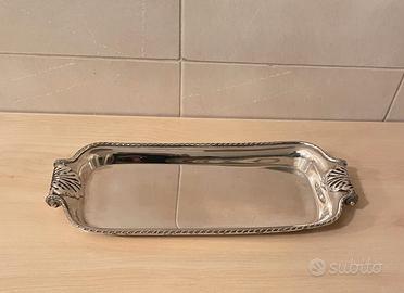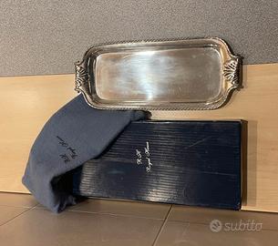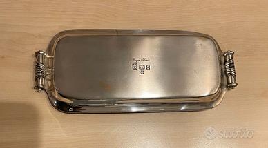 Bel svuota tasche, a vassoio rettangolare con bordo "Gadroon" (cordonato) e manici decorati a ventaglio o a conchiglia (elemento classico dell'argenteria di Sheffield e dello stile Giorgio III). Ispirato ai modelli dell'800 ma fatto in epoca moderna, utilizzabile anche come porta penne da scrivania, in argento Sheffield Royal House, ancora nel suo imballo originale. Mai utilizzato. Misure cm 24x 10x h cm 2