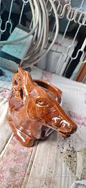 Ceramica, porcellana e terracotta Stile: Vintage Svuotatasche in ceramica color caramello a forma di cervo sdraiato, prodotto in Italia.