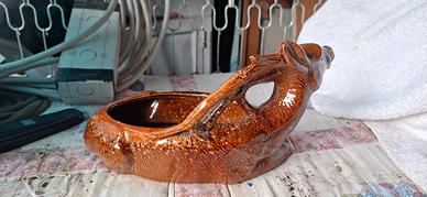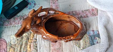 Svuotatasche in ceramica a forma di cervo sdraiato.