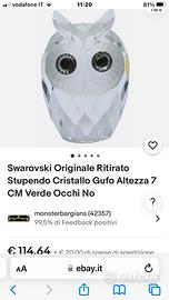 Statuetta Svarovsky vintage anni 90. Gufo “grande” cm 7. Con occhi verdi. Senza confezione. Quinta foto per pubblicità comparativa.