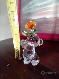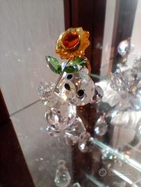 orsetto Swarovski che tiene un fiore. - Fiore con petali gialli e foglie verdi. senza scatola