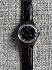 Swatch automatico colore nero, cinturino in pelle con astuccio originale, diametro quadrante cm 4, mai indossato in perfette condizioni
