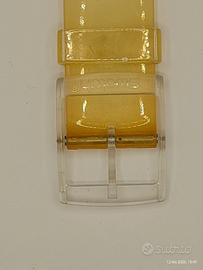Design: Cassa da 41mm trasparente, cinturino in silicone trasparente con riflessi glitter/dorati.