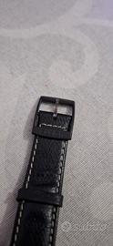 Swatch Chrono Miobiao, modello referenza SCB112, anni '90. quadrante nero con tre contatori (sotto-quadranti) di colore crema/giallo chiaro. Il design include numeri cinesi per indicare alcune ore (come il 12, indicato da "shí èr"). Movimento quartz Swiss Cassa da 37 mm Cinturino Realizzato in pelle nera con cuciture a contrasto. Cronografo con funzione stop e resistenza all'acqua fino a 30 metri.