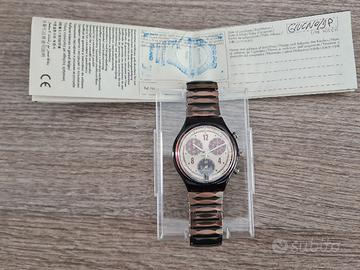Vendo da collezione, perfettamente funzionante nella sua custodia originale - acquistato nel giugno 1998 - Display Chronografo - Resistente all'acqua fino a 3 bar - Tipo di movimento quarzo svizzero, mai indossato, rimosso batteria appena acquistato, viene fornito con batteria sigillata da installare.