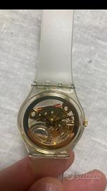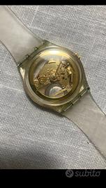 Swatch gent golden Jelly primo swatch distribuito ai soli soci del collector club nel 1990. Perfettamente funzionante con cinturino sostituito da poco con uno originale di nuova generazione cosi da renderlo tranquillamente indossabile. Privo di segni di usura? Il quadrante è perfetto. Verrà spedito senza pila e confezione originale. Formula visto e piaciuto non accetto resi. Resto a disposizione per altre foto o domande.