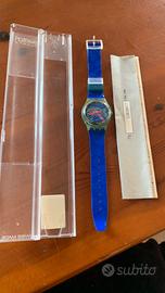 Orologio Swatch Gent vintage “Happy Fish” (SDN101), originale Swiss Made, anno 1991. Iconico modello della serie Scuba con quadrante decorato a tema marino (pesce), cassa trasparente verde e cinturino blu originale. ✔️ Originale Swatch anni ‘90 ✔️ Modello Happy Fish SDN101 ✔️ Funzionante (batteria nuova se sostituita) ✔️ Cinturino originale Swatch ✔️ Completo di scatola originale e supporto interno 🔹 Movimento al quarzo 🔹 Cassa trasparente verde 🔹 Grafica vivace tipica anni ’90 🔹 Condizioni molto buone per l’età 🔹 Normali segni del tempo (vedi foto) Orologio ideale per: •Collezionisti Swatch vintage •Amanti modelli anni ’90 •Chi cerca un pezzo originale e colorato 📦 Spedizione accurata e tracciata 📸 Foto reali dell’oggetto