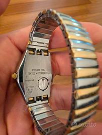 Swatch Irony YLS109 Tonality (anno 1996) con cassa in acciaio inossidabile da 34mm, lunetta dorata e cinturino elastico bicolore argento e oro. Con custodia originale e prova d'acquisto. Mai indossato, da collezione.