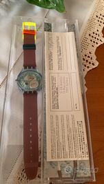 Vendo originale Swatch Scuba 200 “Spray Up” ref. SDN103, anno 1992. Nuovo mai indossato Orologio iconico della linea Scuba, caratterizzato da un design tipicamente anni ’90 con colori vivaci e distintivi: quadrante verde acceso, ghiera viola e dettagli fluo. ✔️ Modello: Spray Up SDN103 ✔️ Anno: 1992 ✔️ Movimento: quarzo ✔️ Impermeabilità: Scuba 200 ✔️ Swiss Made Condizioni: nuovo mai indossato Orologio in ottime condizioni generali. Cassa e quadrante ben conservati. Cinturino originale Dotazione: ✔️ Scatola originale Swatch ✔️ Documenti originali Orologio ideale per: ✔️ Collezionisti Swatch ✔️ Amanti del design anni ’90 ✔️ Chi cerca un pezzo originale e completo 📦 Spedizione accurata e protetta Oggetto vintage originale, non una riedizione.