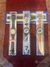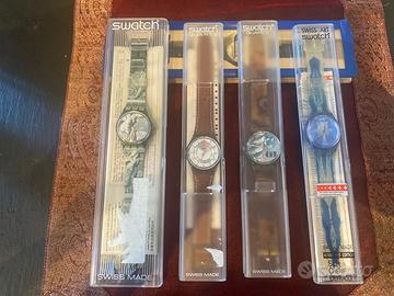 Collezione di 14 Swatch di cui alcuni mai indossati con scatola e documenti. Modelli: Gold SmileClassic-Blue Segment- The People One Hundred Million-Master Classic vintage-Mark Quartz Gm 106-GB 189 Calorie-Animal Wheel Gz 119 700 years Helvetic Federation-Swatch Big Rock-Silvie & Cherif Defraoui ed. numerata-Orly Quartz-Rare Plaza-Cupydus Quartz-Edgar Allan Poe-Acquachrono Golden rivetto flex-