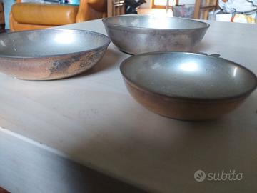 Tre piattini-scodelle Sweet England in ottone di diverse dimensioni. Da collezione