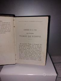 Il libro mostrato nell'immagine è una copia antica de L'imitazione di Cristo (Imitatio Christi in latino, intitolato Imitacion de Cristo in questa edizione spagnola), un'opera devozionale cristiana attribuita a Tommaso da Kempis. È considerato uno dei libri spirituali più influenti e letti dopo la Bibbia.