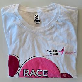 Maglietta originale dell’edizione 2025 della Race for the Cure organizzata da Komen Italia per la salute femminile. Colore bianco con grafica rosa dedicata a prevenzione, cura e ricerca. Taglia L (modello unisex), marchio Roly “Atomic 150”. Tessuto 100% cotone, morbido e traspirante. Condizioni perfette, mai indossata.