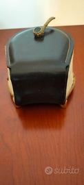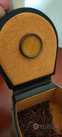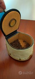 Vendo vecchia tabacchiera in legno rivestita in pelle con applicazione di pelliccia e base in ottone a forma di ferro di cavallo originalissima e rara