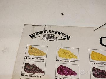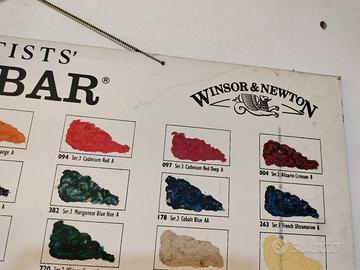 Vendo rara tabella colori originale Winsor & Newton "Artists' Oilbar". Il pannello mostra i campioni di colore reali applicati a mano, completi di nomi, codici e serie. Un pezzo di storia del materiale artistico, ideale per collezionisti o come elemento d'arredo per studi d'arte e atelier. Marca: Winsor & Newton Condizioni: Buone condizioni vintage (come da foto), con patina originale che ne attesta l'autenticità.