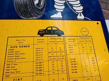 Bellissima tabella pressione gomme smaltata vintage anni 1959 smalterie lombarde ,Fiat ,Alfa Romeo,Lancia ecc posso spedire in tutt' Italia scambio con auto moto d'epoca tabelle ecc