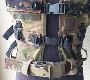 Ottimo Tactical Vest mimetico CE (Camouflage Centre Europe) dotazione Esercito Francese e Legione Straniera anni 2000. Raro modello con doppio zainetto posteriore staccabile. Poco usato in condizioni molto buone con scarsi segni di impiego, completo di tutti i vari cinghiaggi regolabili. La taglia non è riportata comunque potrebbe essere una Medium, ampiamente regolabile. Stupendo pezzo originale dotazione militare, non soft-air. (NB nessun impegno su taglie, vestibilità ecc. cedo esclusivamente come oggetto da collezione, grazie).