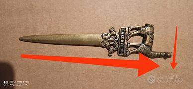 Vendesi taglia carte peruviano in ottone vintage. Dimensioni: 13 cm X 3 cm.