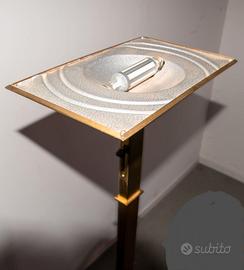 Piantana punto luce da terra Tagliabue & Portonaro primi anni '80 in metallo dorato. Non ci sono difetti salvo leggera ossidazione che sparisce con semplice polish. Se non si capisse dalle fotografie la base e la luce sono di forma piramidale con base rettangolare mentre l' asta è di sezione rettangolare