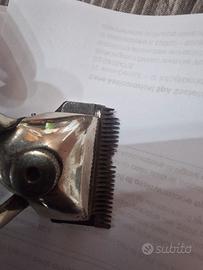 tagliacapelli vintage 3 pezzi piu pennello che perde peli..e un kit da barbiere che ha un po di anni,da tenere per uso collezionistico..le macchinette sono funzionanti,solo quella centrale.ha le lame rotte..le altre sono aposto..