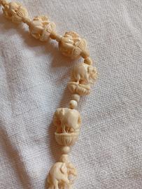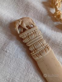 tagliacarte lungo 17 cm e collana in avorio ambedue aventi soggetti elefanti la collana è priva di chiusura (danneggiata)