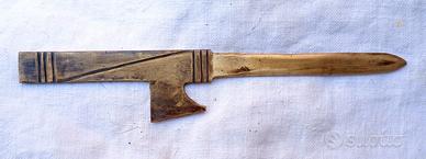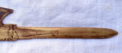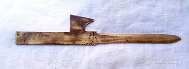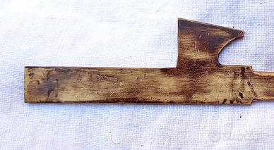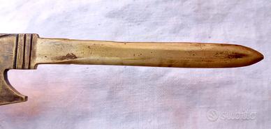 Tagliacarte d'epoca fascista degli anni '30. Il cimelio in argomento è stato realizzato interamente in ottone e presenta l’impugnatura a forma di fascio littorio di gusto "FUTURISTA" . L'affascinante "FONTE MATERIALE" del Ventennio fascista italiano si presenta in “OTTIME" condizioni di conservazione, "genuino" ed "intonso" senza ne mancanza, rottura e/o difetto alcuno. Misure: lunghezza complessiva = 200 mm; solo tagliente = 103 mm.