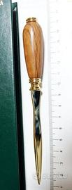 Elegante Tagliacarte professionale, con manico in legno di Castagno realizzato a mano, la lama in acciaio dorato. Pezzo unico. Qualche imperfezione non è da considerarsi un difetto, ma aggiunge pregio e rende unico questo articolo. Con Certificato di garanzia.