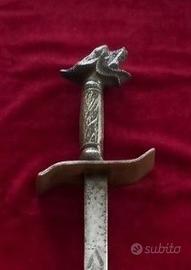 tagliacarte ornamentale da Collezione con l elsa lavorata come da foto Pomo decorativo con testa di lupo/drago finemente scolpita pezzo molto valido come pezzo d'arredamento vintage. lunghezza 110 cm . non affilato non appuntito con lavorazioni sullalama spedizione disponibile ovunque con posta tracciata